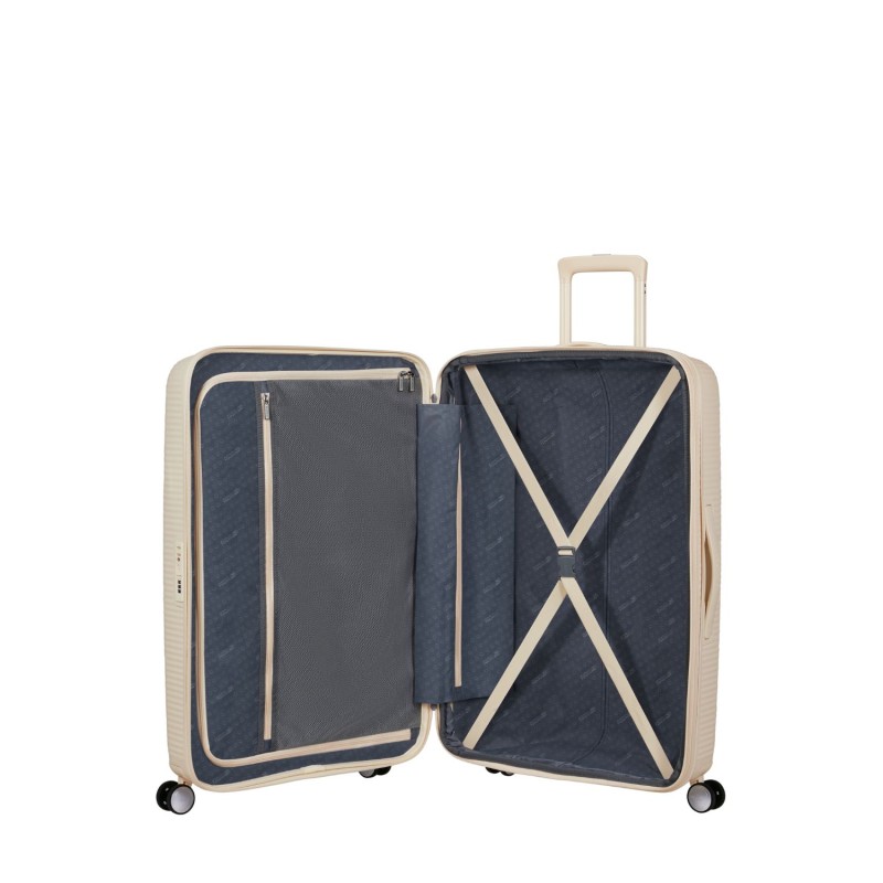 tono su tono con l'esterno. Tasca interna e divisorio in fodera con tasca supplementare con zip. Le doppie ruote garantiscono stabilità e un movimento scorrevole in ogni situazione. Chiusura fissa integrata con combinazione a 3 cifre e funzione TSA per la sicurezza dei tuoi effetti personali. Volume: 97/110 L. Peso: 4.2 kg.