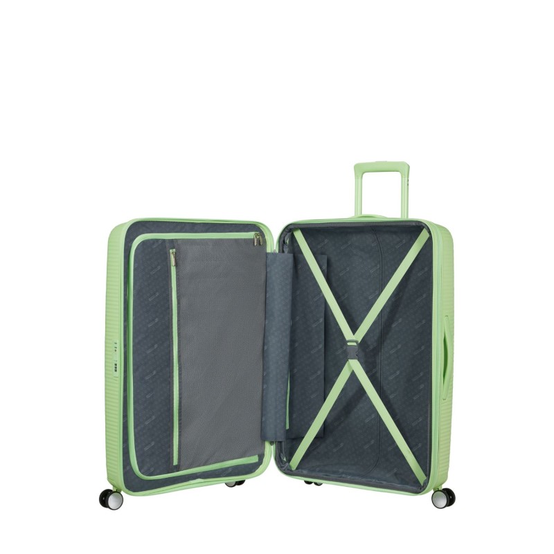 tono su tono con l'esterno. Tasca interna e divisorio in fodera con tasca supplementare con zip. Le doppie ruote garantiscono stabilità e un movimento scorrevole in ogni situazione. Chiusura fissa integrata con combinazione a 3 cifre e funzione TSA per la sicurezza dei tuoi effetti personali. Volume: 97/110 L. Peso: 4.2 kg.
