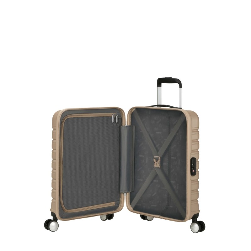 Tieni i tuoi oggetti al sicuro con la chiusura fissa con combinazione a 3 cifre e funzione TSA. Dotata di cinghie fermabiti e divisorio in fodera per la massima organizzazione. le doppie ruote assicurano scorrimento agevole e stabilità di movimento sui vari terreni. Volume: 34L. Peso 2.6kg.
